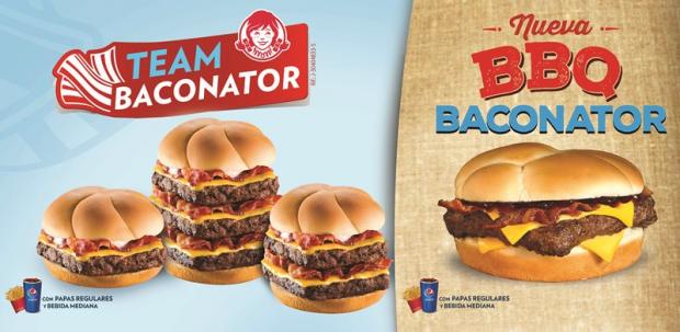 Wendy´s incorpora a su menú el “Team Baconator”, una nueva propuesta integrada por tres hamburguesas: sencilla, doble y triple carne con queso y tocineta. La triple carne se lanza al mercado como “Baconator Triple”.