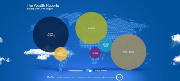 De hecho, se espera que la riqueza global de los grandes patrimonios llegue a 70,5 billones de dólares en 2017, 8% más en comparación con 2014, liderado por Asia-Pacífico.