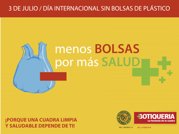 En una nueva celebración del Día Internacional Sin Bolsas Plásticas, este 3 de julio, la alianza Botiquería – Fundación Tierra Viva se ha propuesto alertar, informar y educar a la población acerca de esta peligrosa relación y lograr con ello, que los venezolanos reduzcan la cantidad de estos artículos que usan a diario.