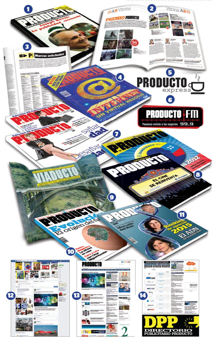 El Grupo Editorial Producto maneja varias marcas incluyendo sus desarrollos electrónicos desde el inicio de la era digital. En orden cronológico, la primera hermana de PRODUCTO fue DINERO, revista que salió al mercado en 1988. Le siguió PRODUCTO LIGHT, sobre vida saludable (1991); y más tarde ESCAPE (1992) dedicada al turismo receptivo con formato bilingüe español/inglés. Casi enseguida vino PODER (1993) para el mundo social fashion. Y también funcionó adecuadamente.