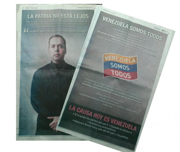 Pero mucho más enfático luce el mensaje en el titular final de pie de página: "La causa hoy es Venezuela". Allí parece haber un claro e irreverente planteo al interior de la MUD para que la dirigencia de los principales partidos deje de lado el enfrentamiento con lo que llaman "la derecha radical", entre cuyos referentes principales están hoy los más emblemáticos presos políticos de Venezuela. Con un tono –convengamos– algo escolar y por lo mismo irritante y retador, el aviso dogmatiza: "repeat after me: Venezuela somos todos". Y remata: "Si te gustan los partidos bien por ti (pero) guárdate tu militancia, guárdate tus personalismos (porque) Venezuela somos todos más allá del color y los partidos". ¿Puede estar envuelto en ese final un mensaje también para los militantes del PSUV? Tratándose de Jota Jota, es bastante probable, aunque parezca imposible.
