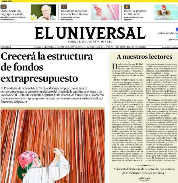 El Universal alude únicamente al caso de un columnista, que según afirma el periódico, los denunció erradamente de censura. No obstante, diversos articulistas han señalado que sus textos fueron censurados o vetados. Hasta el martes 5 de agosto, el Sindicato Nacional de Trabajadores de la Prensa, registró 30 articulistas censurados y/o sacados del diario, al informárseles que ya no recibirían más sus artículos.