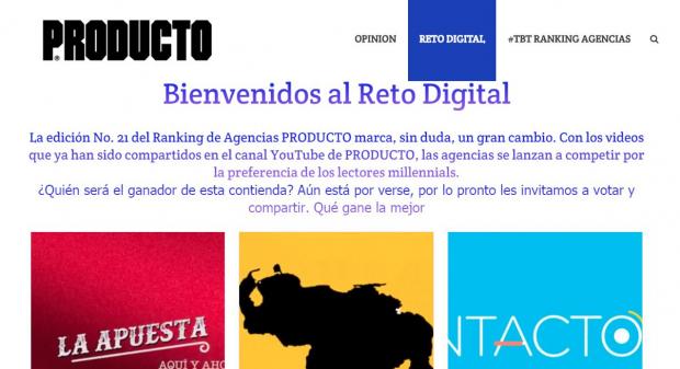 El RETO DIGITAL es el nuevo desafío que el Ranking de Agencias PRODUCTO incluye este año, el cual consiste en que las agencias que participen envíen un video que dure un minuto en donde le hable al mercado, especialmente a los millennials. El mismo será publicado en la página web de PRODUCTO, sin costo, y debe ser producido por la agencia respondiendo a esta pregunta: ¿Cuáles son los principales retos que enfrentan hoy las agencias en Venezuela para superar la crisis?